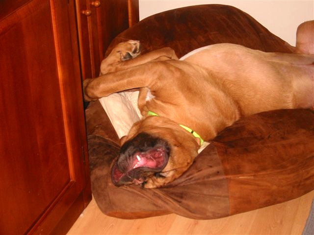 | Boris "Snordeaux" demonstrates his difficult backstroke easy-breathe snoring position. |