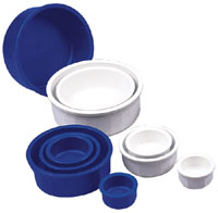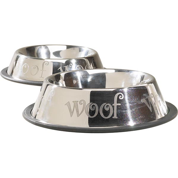 | Quick Tips • Use a stainless steel bowl if your DDB is a nibbler. Whichever dish you use, choose a dish at each stage of the pup/dogue’s growth that will allow plenty of breathing space surrounding its muzzle/head as it eats. For pups, weighted, wide-bottom heavy plastic dishes work well. Once they are eating well and not playing with dishes, you can switch to the lightweight stainless steel bowls. BE SURE to use STAINLESS steel and not a cheaper metal bowl which can taint food/water. • Stainless steel bowls are the easiest to sanitize. • Ceramic bowls must be sanitized daily. Replace cracked or scratched bowls immediately. !! You will save yourself work and trouble if you place your DDB dishes on a small bathmat/rug with or without a rubberized, non-slip back. This will absorb spills and drool and can be washed frequently. Small throw rugs work well too. !! Don't forget to keep a small stack of terry-cloth dishtowels handy. Once your DDB is finished eating, just wipe its muzzle as you would wipe the face/mouth of a toddler. (Most of the water/drool ends up under the chin and down the throat). If you are finicky about your towels, be sure you reserve a certain color to identify those you use for your DDB. DDB do not drool unless they are drinking/chewing something (generally). !! Do not feed or water your pup/dog outside. The dishes will attract insects and birds which transmit disease if they drink from the bowl; attract other vermin. • Make sure to wash bowls with hot soapy water. • It is helpful to keep a second set of dishes to use while the other is being cleaned. Buy a separate color dish brush to identify which is for your pet dishes. • Use a storage container to keep food fresh (and keep critters out). If you use canned food, place unused portions in a glass or plastic container, and discard the can. Do not store opened food in the product can in your refrigerator. The metal can oxidize and taint the food. !!Be SURE that your puppy/dogue does not have access to an easily opened container or feedbag which can be ripped open. Some puppies/dogues will consume dangerous quantities of kibble/food which can lead to bloat (See separate link on eating issues). DDB are very smart and easily learn to “pop” lids. Always check until your pup is mature enough that you trust it alone near feed supplies. |