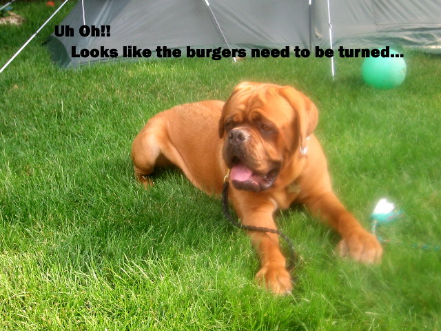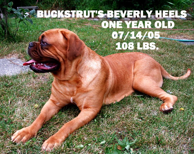 | Boris~Guarded closely by his 2 year old mistress and her older brother. Likes home-made peanut butter cookies, camping & catching frogs. Desires a ride in his "Dad's" classic car. Earned his CGC in March at DDBS Nationals. Last weight: 130+ Lbs. Does not miss Vermontville. |