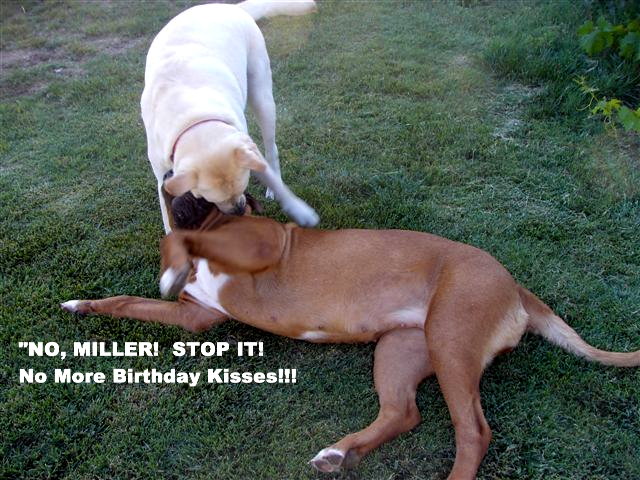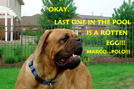 | Miller appears to still have the upper hand with Fancy Face. Fancy has adjusted well to California life, weekends at the beach, and hanging out at her pool. She loves her two young masters very much. Last weight: 110+ Lbs. Does not miss Vermontville. |