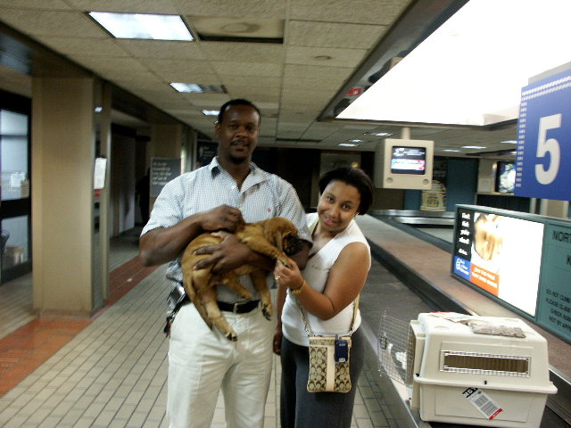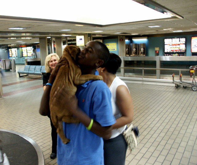 | "Here's my way-cool new daddy meeting me at New Orleans Intl. Airport. Even my new sissy, Monet came out to greet me...all the way from Texas!!! I am SO happy!" |