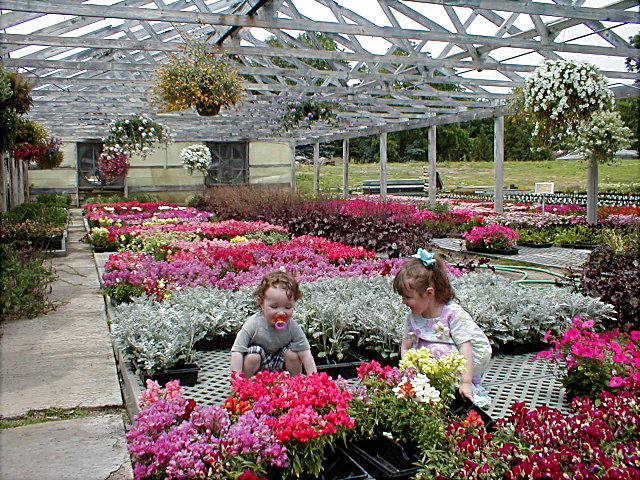 | Just when we can't take anymore snow SPRING arrives! Grandbabies Ashton and Dacey pick out bedding plants for their garden. Berceuse and I keep everything watered and pruned. |