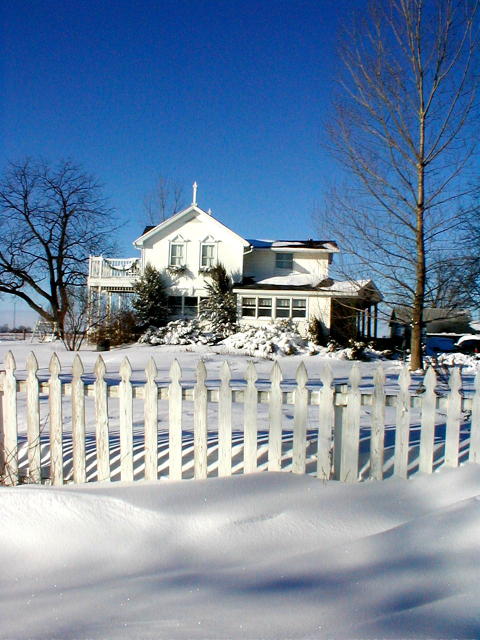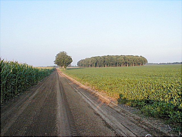 | We are surrounded by professional grain farmers, many of them Amish. When we take walks, they are VERY long ones. Our home is just on the other side of that grove.. When giving our company directions, we just tell them to "look for the corn n' bean fields." Sometimes, they find us. |